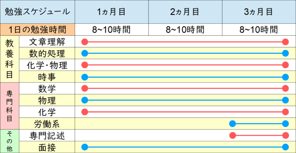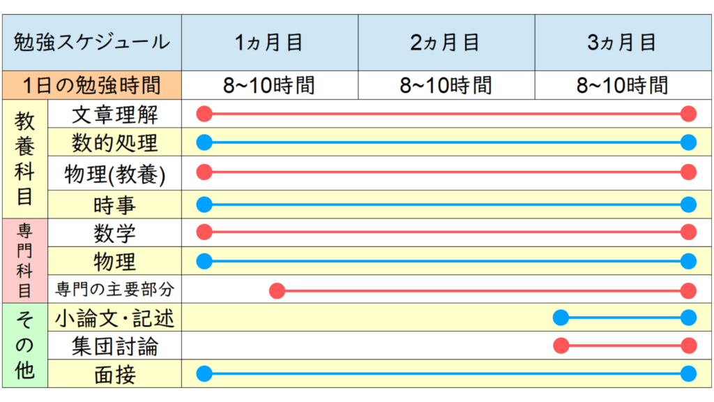【3ヵ月の勉強スケジュール】技術系(※物理ベース)区分