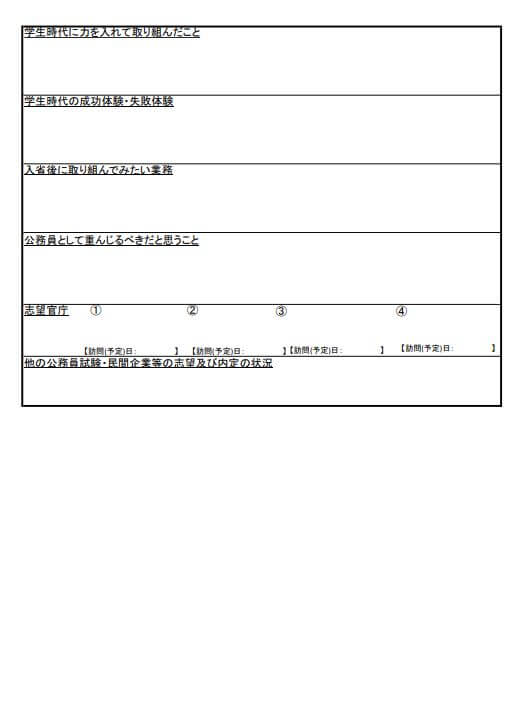 公務員のライトが提供している「官庁訪問クラス」では、最新の試験体験談や、合格者の面接カード記載例が見放題となっております。