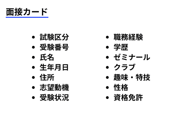 面接カードとは、面接の際に使用する簡単な質問シートのようなものです。