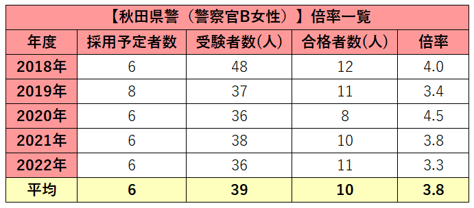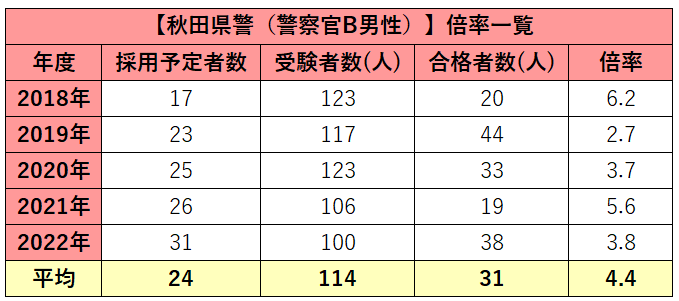 秋田県警の試験難易度について、『試験倍率』を元に解説していきます。