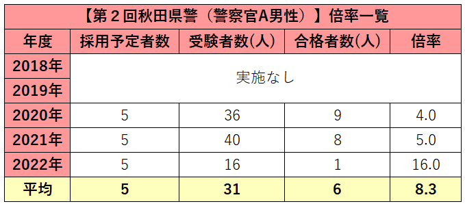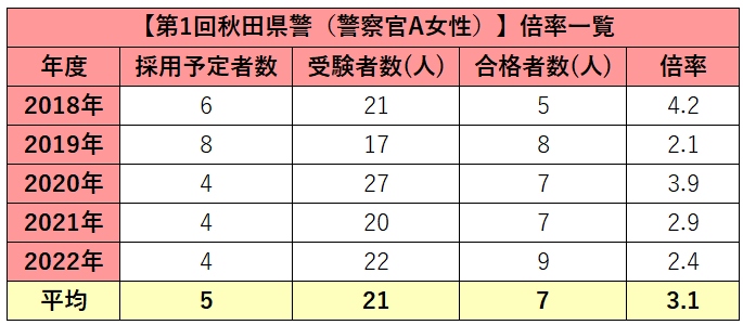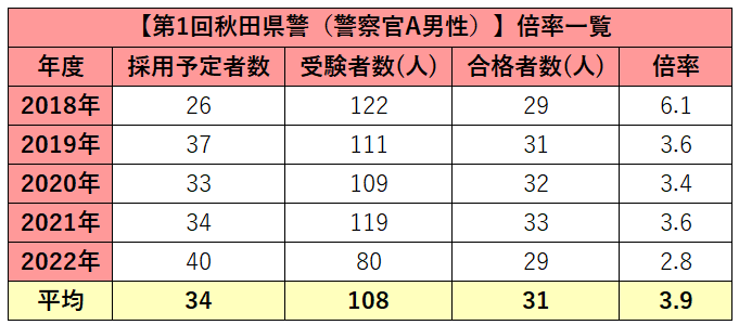 秋田県警の試験難易度について、『試験倍率』を元に解説していきます。