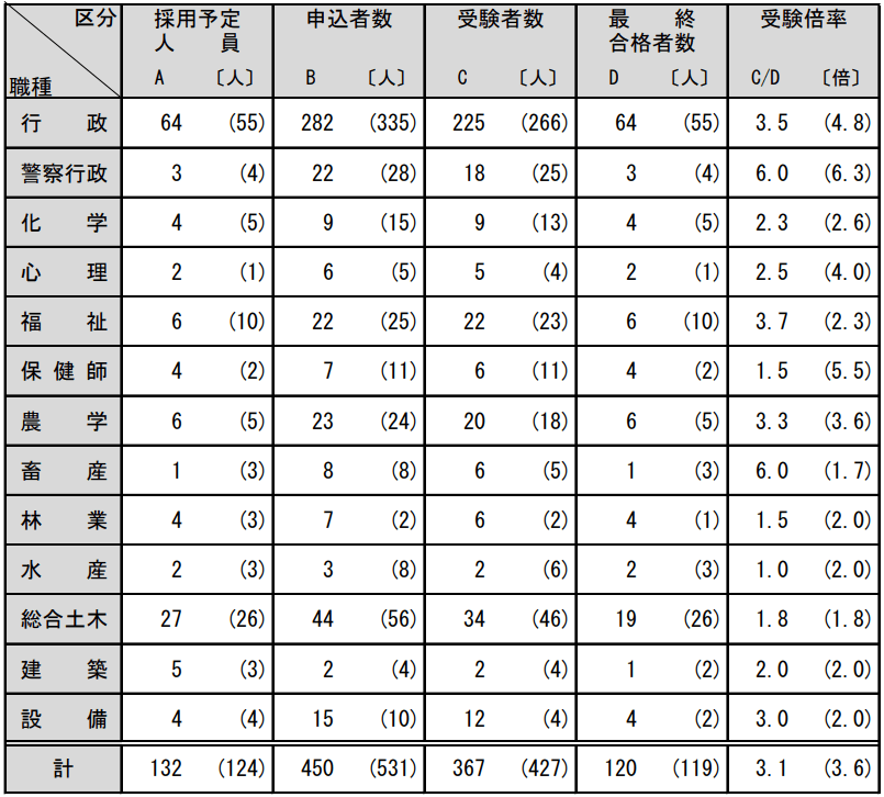 公務員試験は競争試験なので、需要(採用予定者数)と供給(受験者数)の関係は非常に重要なのですが、年度ごとに違うので、最新の情報は公式の更新を待っておきましょう!