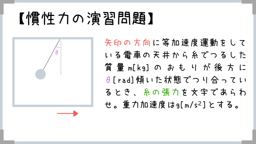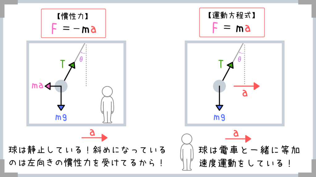 コレは「慣性力」というみかけの力がはたらいているからなんですね!