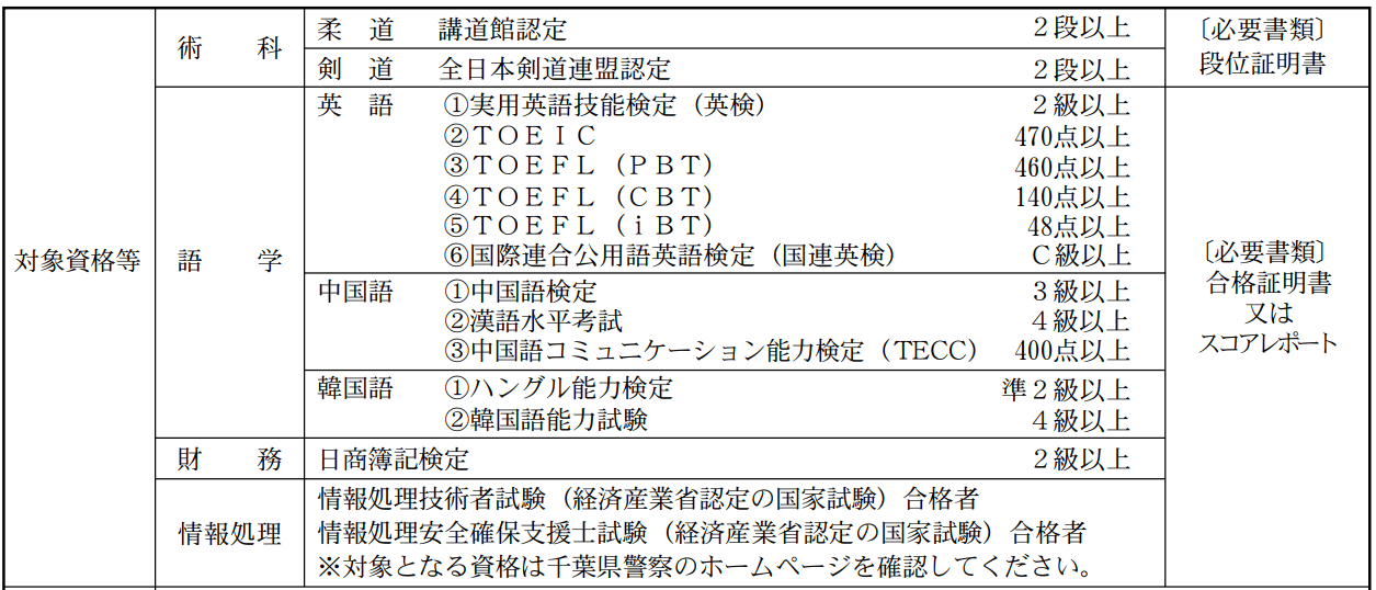 千葉県警の試験は、取得した資格について加点があるものがあります。
