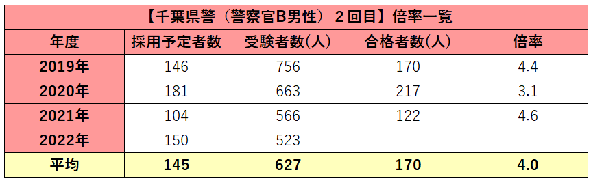 千葉県警の試験難易度について、『試験倍率』を元に解説していきます。