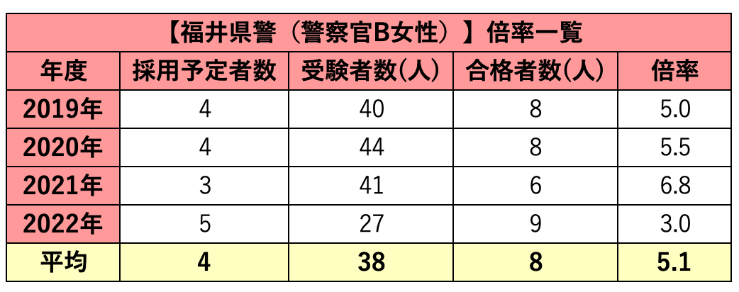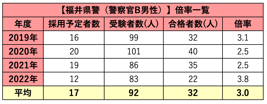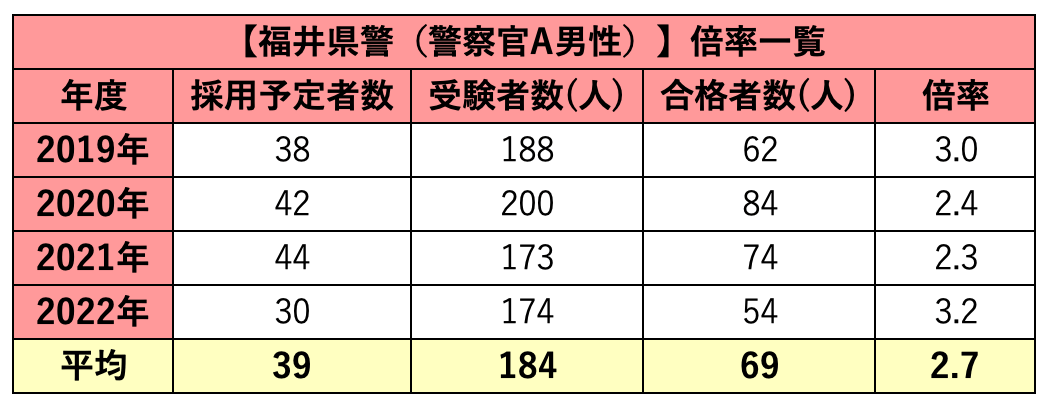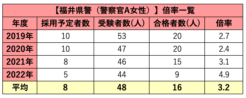 このように福井県警の採用試験の倍率上昇傾向にあります!