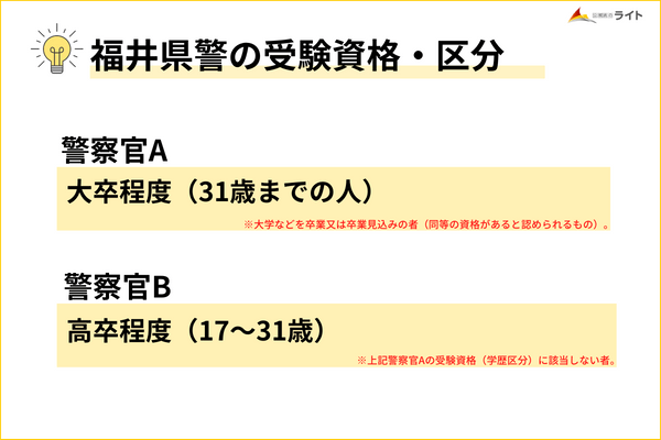 福井県警の採用試験は、A区分・B区分とつの試験区分があります。
