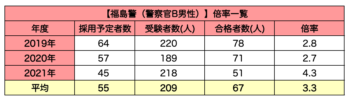福島県警の試験難易度について、『試験倍率』を元に解説していきます。