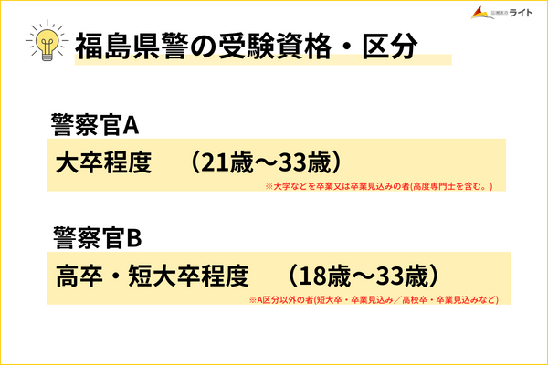 福島県警の試験区分は警察官A・警察官Bに分かれています。