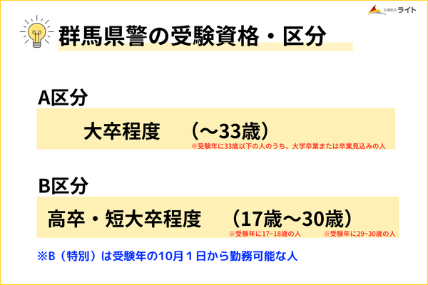 群馬県警の採用試験は、警察官Aと警察官Bのつの試験区分があります。