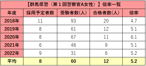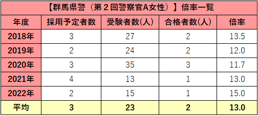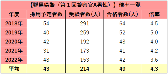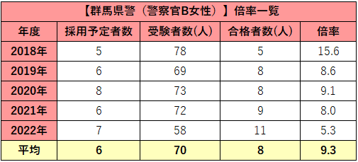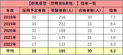 このように群馬県警の採用試験の倍率やや減少傾向にあります!