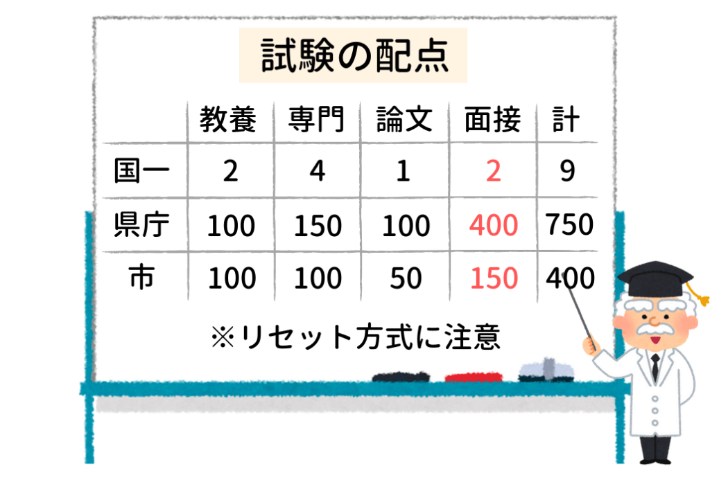 最近は人物重視の自治体が増えていますし、そもそも面接の配点というのはどこもめちゃくちゃ高いです。