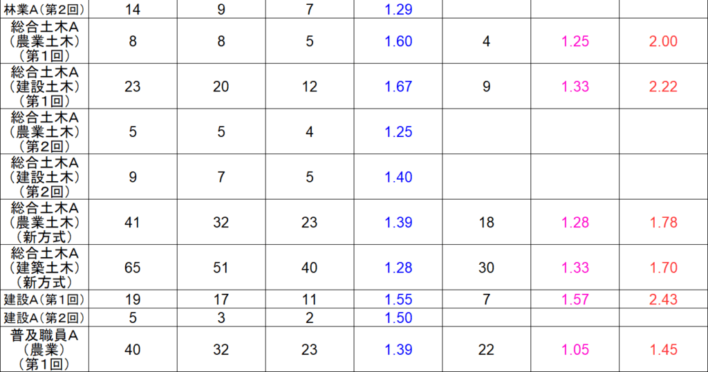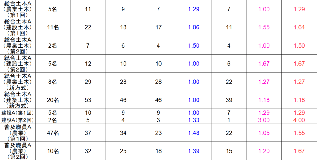 全体的に見ても、筆記試験の倍率が低く、2次(人物)試験の倍率が少し高いのが特徴的ですよね!