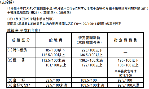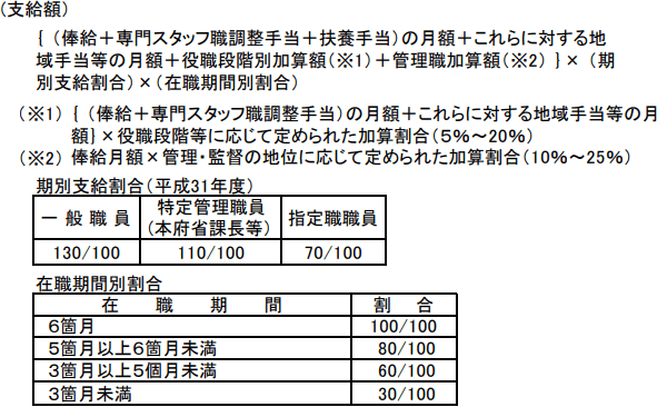 自治体ごとにも様々だと思いますが、国家公務員のものを参考にするとこんな感じです。