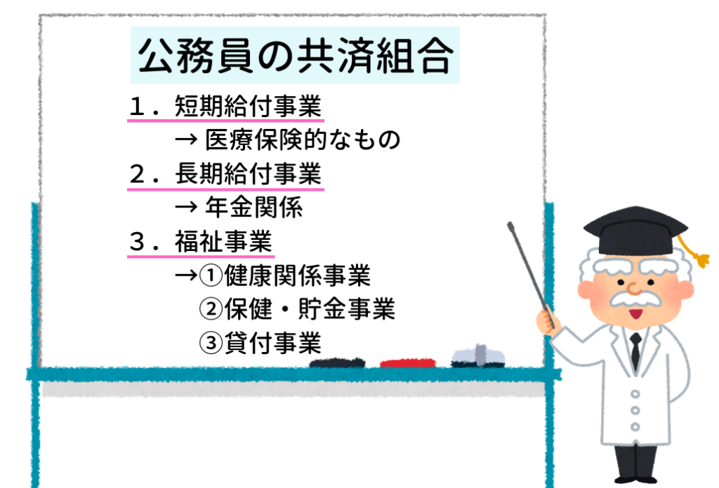 公務員の共済組合の事業は大きくこの3つに分けられます。