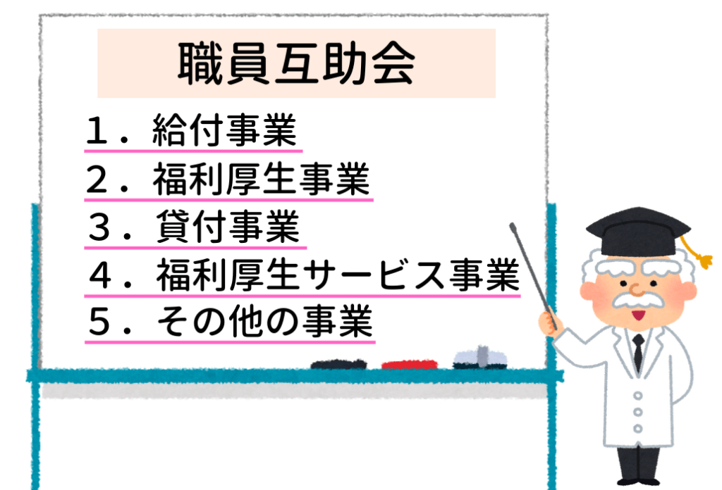 互助会については大きく分けて5つの事業について紹介したいと思います!