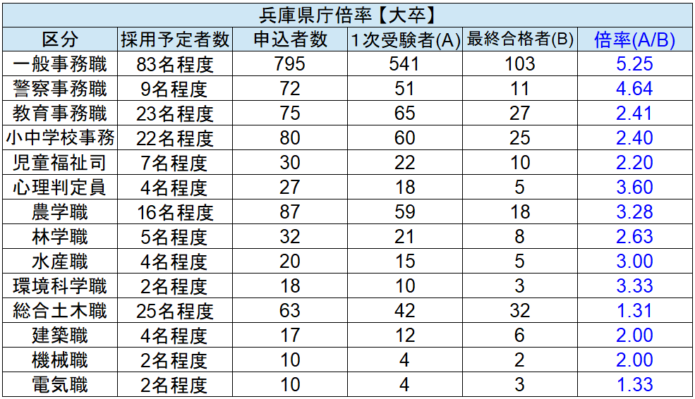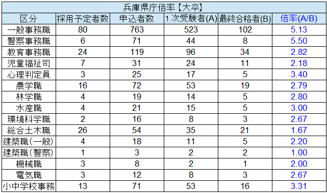 ※兵庫県職員上級採用試験についての表が見えにくい人はPC表示を推奨します。
