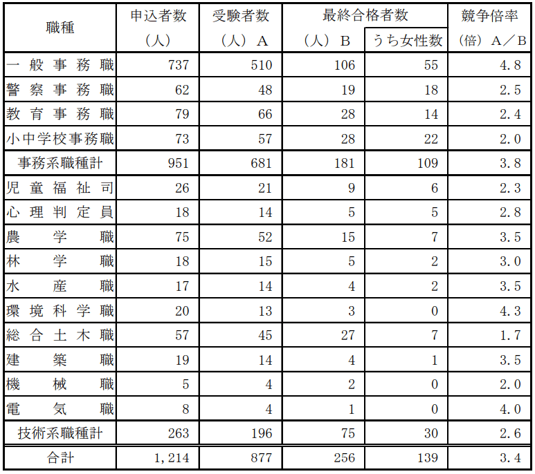 筆記倍率や2次試験のみの倍率は公表されていません。