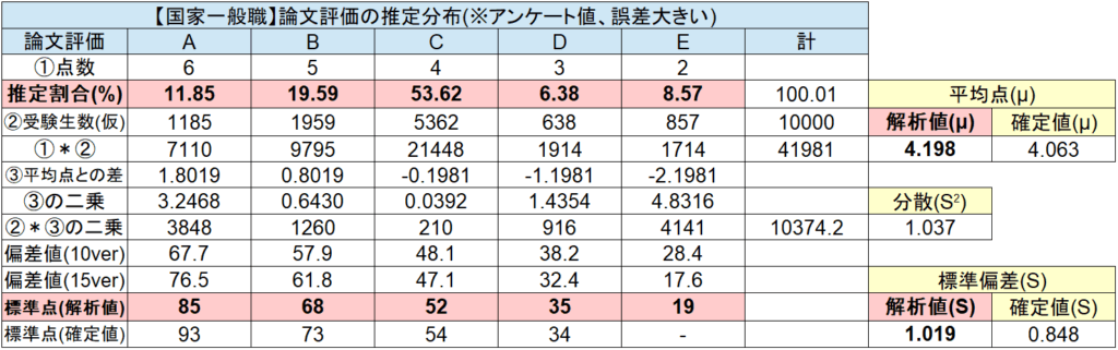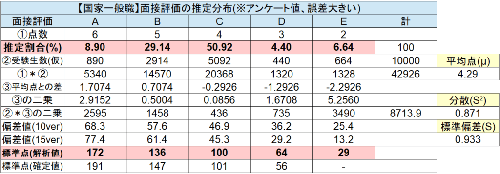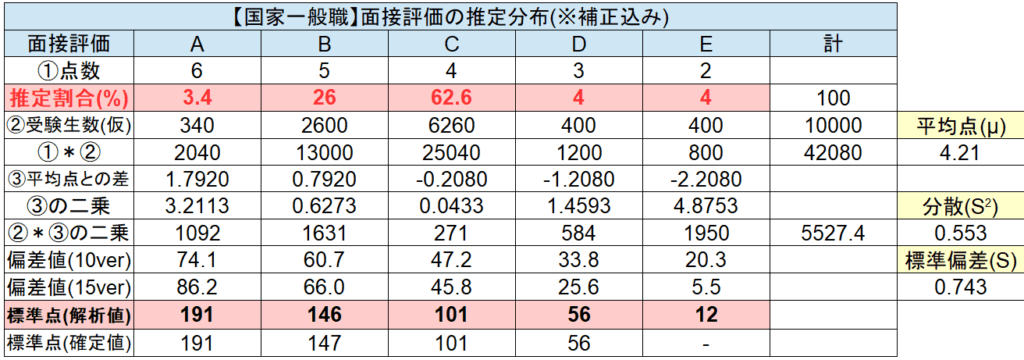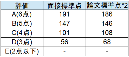 面接の評価については、評価ごとの標準点しかわかっていませんが、予想した割合とこの標準点はすべて整合性が取れなければいけません。