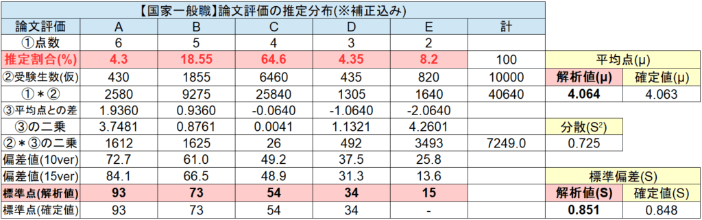 ただ、評価ごとの大体の割合や平均点等はつかめているので、それをもとに補正してみると次のようになります。