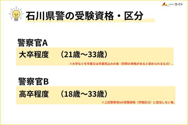 石川県警の試験区分は警察官A・警察官Bに分かれています。