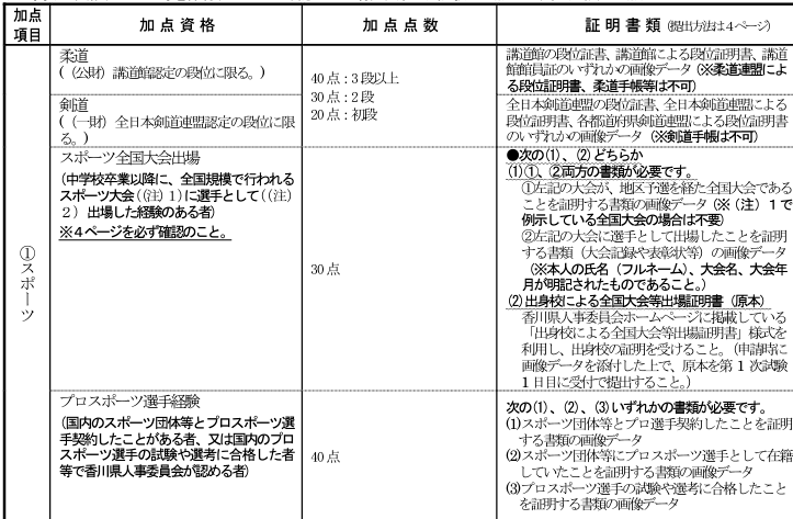 香川県警の試験は、取得した資格について加点があるものがあります。