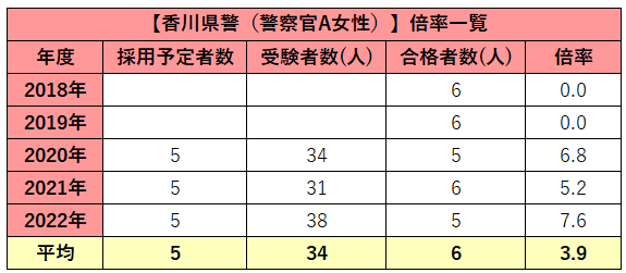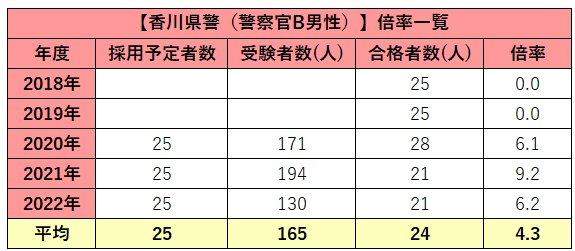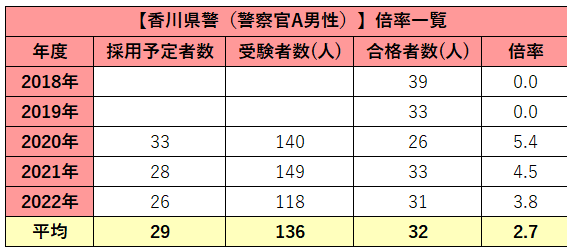 香川県警の試験難易度について、『試験倍率』を元に解説していきます。