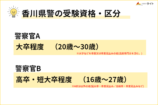 香川県警の試験区分は警察官A・警察官Bに分かれています。
