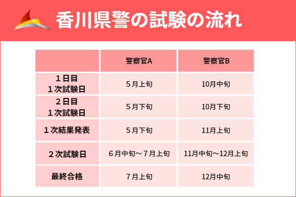 香川県警の採用試験は、警察官Aと警察官Bの2つの試験区分があります。