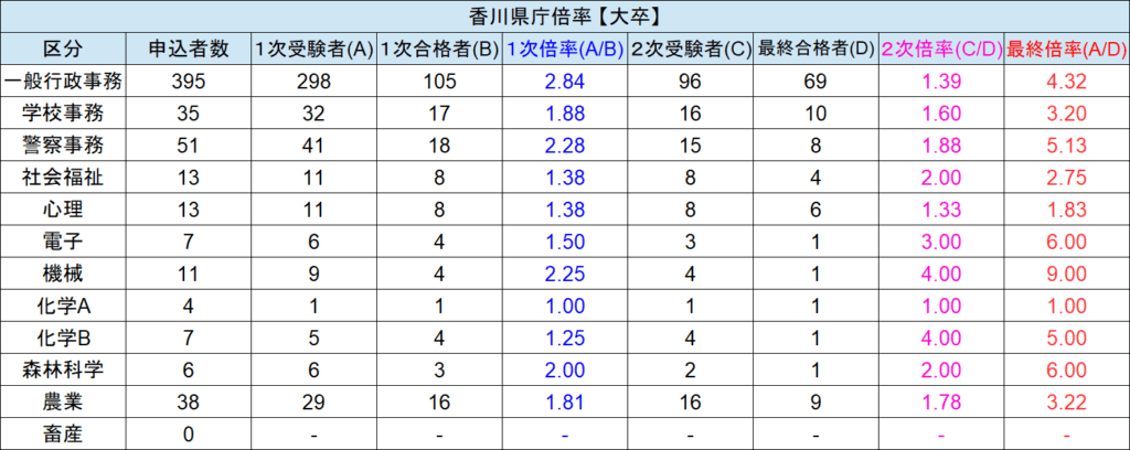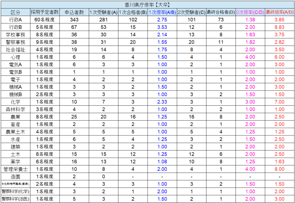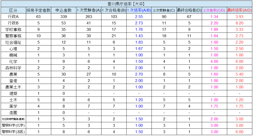 ※香川県職員上級採用試験についての表が見えにくい人はPC表示を推奨します。