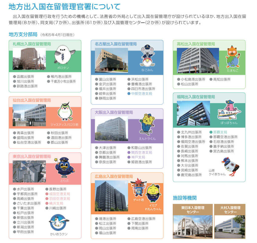 そのほかにも、出張所や2カ所の入国管理センターが設置されています。