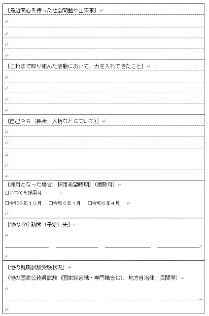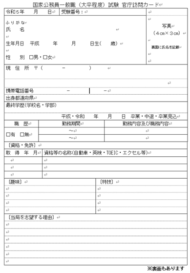 公務員のライトが提供している「官庁訪問クラス」では、最新の試験体験談や、合格者の面接カード記載例が見放題となっております。