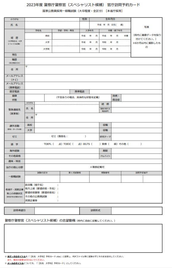 警察庁では、訪問予約の際に上記の「官庁訪問予約カード」をメールで提出するようです。