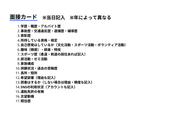 面接カードとは、面接の際に使用する簡単な質問シートのようなものです。