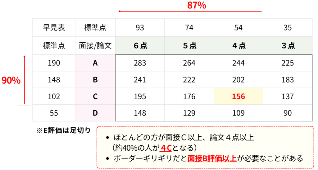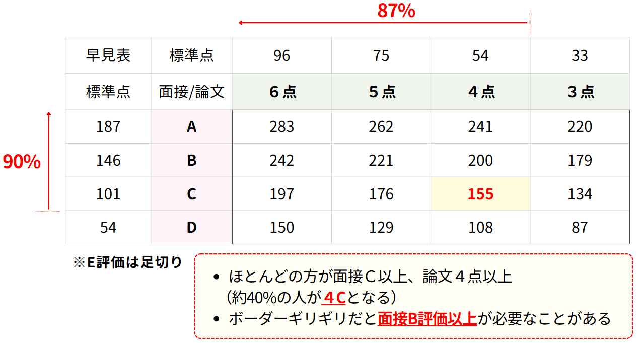 - 4C評価で安全に合格するための点数(受験区分ごと)…等