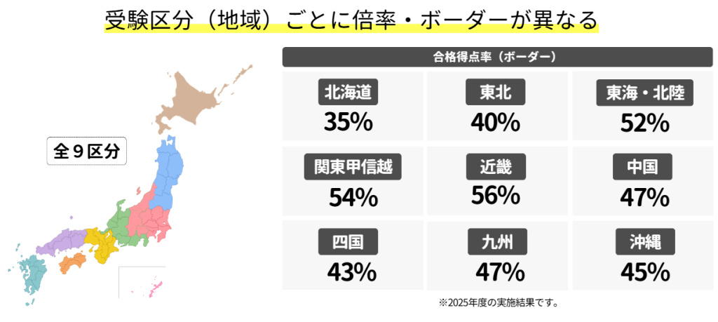 - 筆記試験の合格ボーダー点(受験区分ごと)