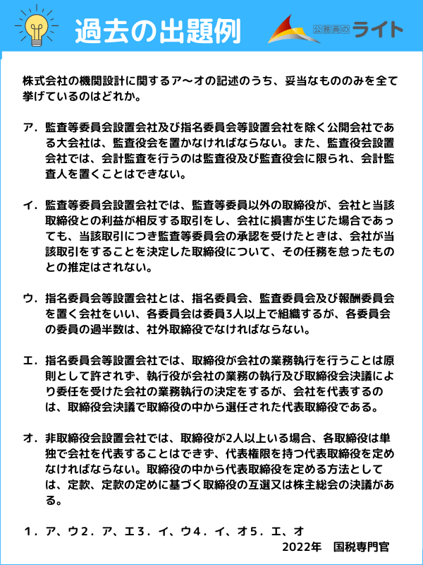 2022年の国税専門官の商法の問題では、2問中2問が株式に関する問題でした。