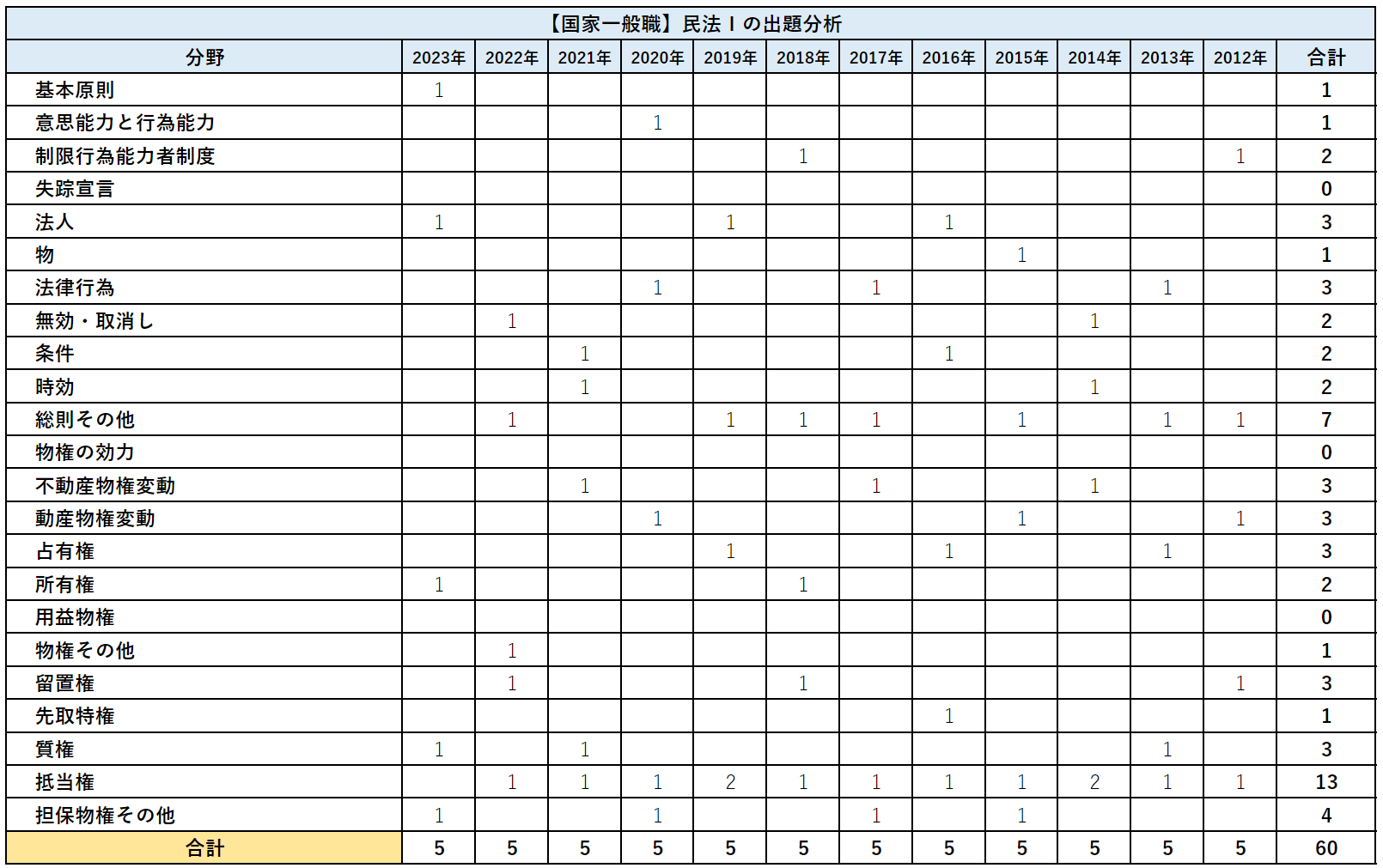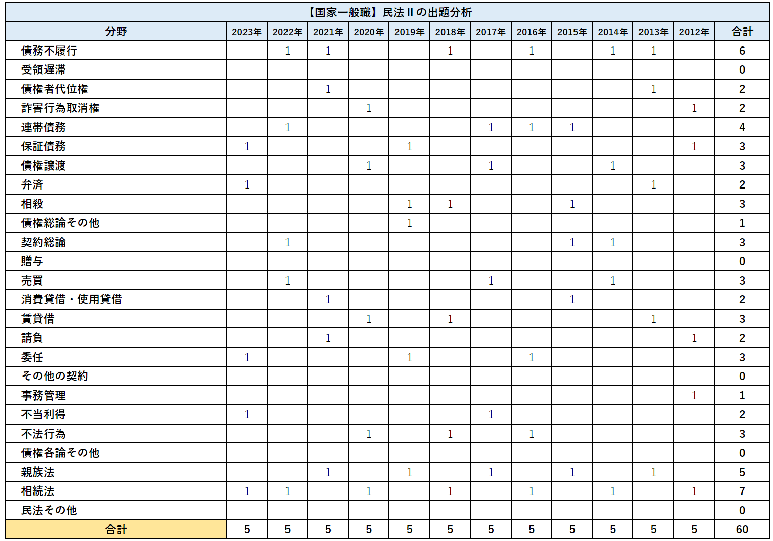 【国家一般職】民法Ⅰ・民法Ⅱの出題数