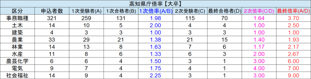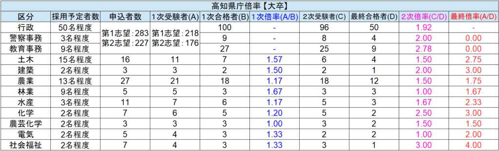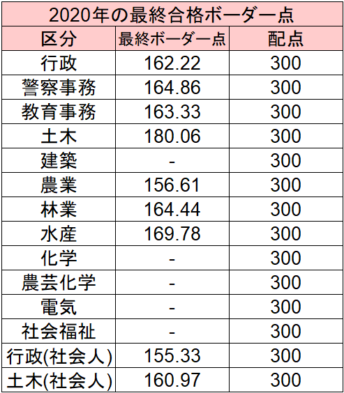 高知県庁は筆記のボーダー点と最終合格ボーダー点を公表しています。