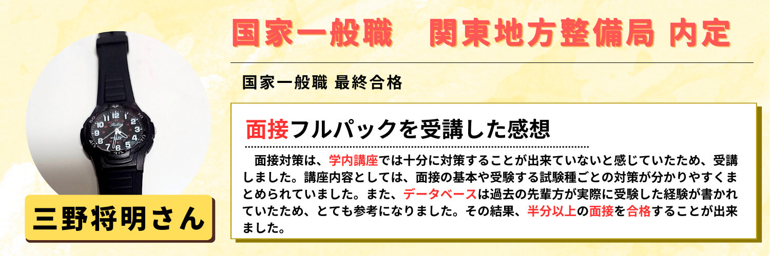 国税専門官や特別区など、他の試験を併願している場合は、面接フルパックをおすすめします。もちろん面接フルパックでも国家一般職の試験対策はできますのでご安心ください。