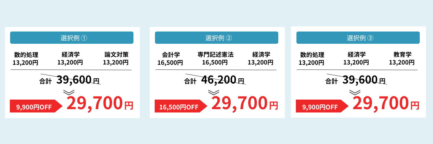 上記の講座一覧から3点もしくは5点をセットで購入することができます。