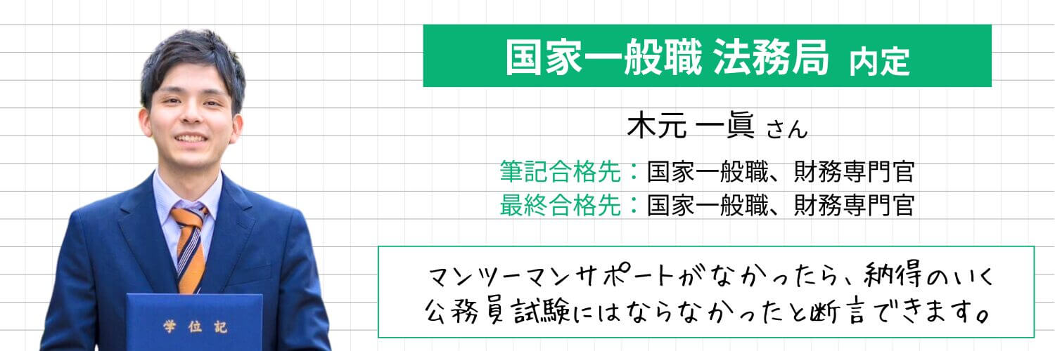 非常に満足していますし、二人三脚でゴールまで辿り着けてとても嬉しかったです。その中でも、筆記試験や官庁訪問の直前に応援メッセージを送ってくださったのが特に嬉しかったです。真摯に寄り添ってくれたマンツーマンサポートがなかったら納得のいく公務員試験にはならなかったと断言できます。ここまで言い切れるのも、1人孤独に道標の立て方もわからず勉強し続けていた経験があるからこそだと思います。独学で勉強しているけど、このやり方で本当に合格できるのだろうかという受験生には是非マンツーマンサポートをオススメします。