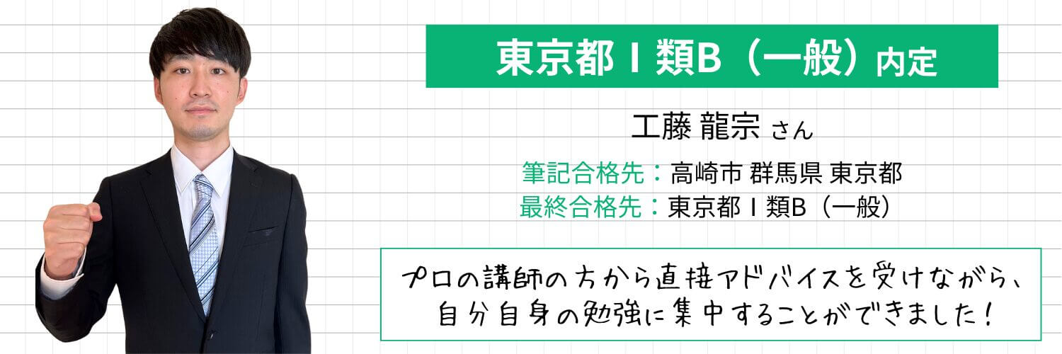 公務員試験は結果が出るまでとても長いので、長期間対策を行っていく中でモチベーションが低下したり、諦めそうになったり、直前期に模試の点数が悪くて不安になったりする事もたくさんありましたが、公務員のライトの講師がマンツーマンサポートで何度も励まして背中を押してくださったおかげで最後まで諦めずに合格を掴み取ることができました。 また自分の周りには公務員受験生がおらず、1人で対策をしないといけない状況だったのですが、公務員のライトの講師の方がマンツーマンでサポートしてくださったおかげで情報収集の面で困ることは一度もありませんでした。 情報戦の公務員試験でいろんな情報を得ることができるのはかなりアドバンテージになっていたと思います。 最後に、公務員のライトのマンツーマンサポートがなければ自分は公務員試験に合格することはできませんでした。 合格までサポートしていただき本当にありがとうございましました。 来年から公務員として頑張っていきたいと思います。