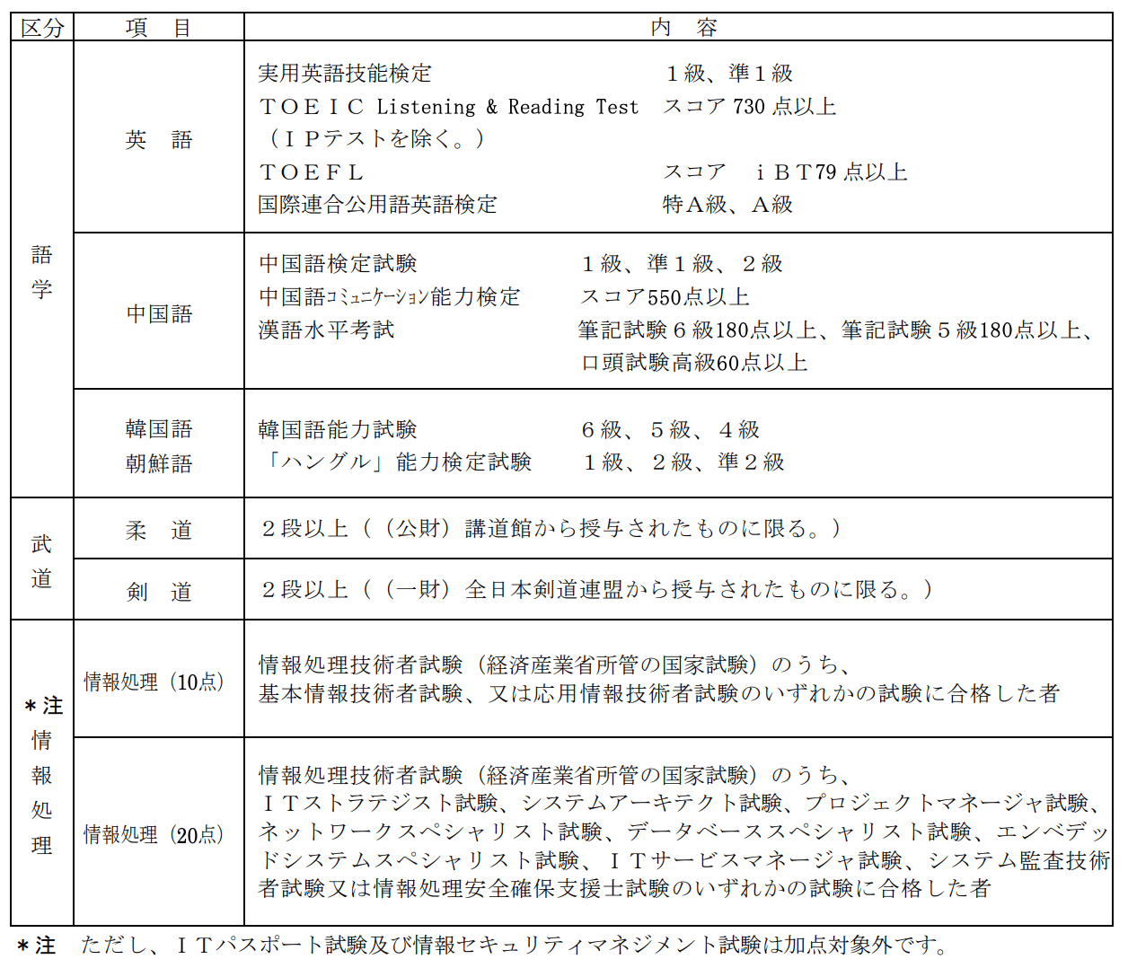 熊本県警の試験は、取得した資格について加点があるものがあります。