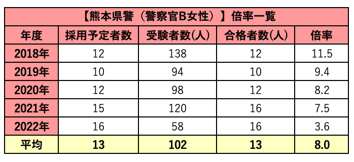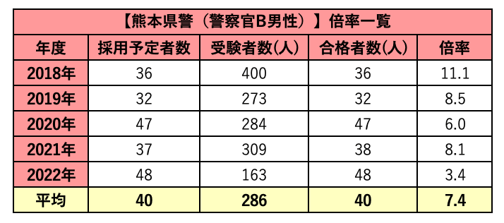 このように熊本県警の採用試験の倍率減少傾向にあります!