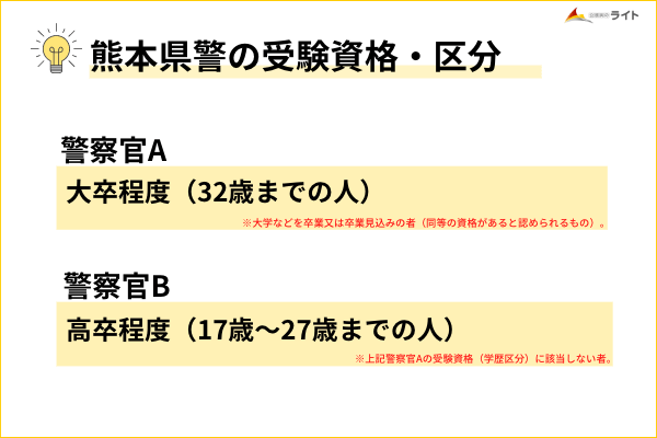 熊本県警の採用試験は、A区分・B区分とつの試験区分があります。