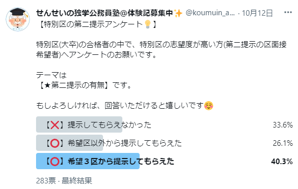 【特別区】⑧第二提示以降の区面接で、第一希望の区から提示してもらえることはあるか