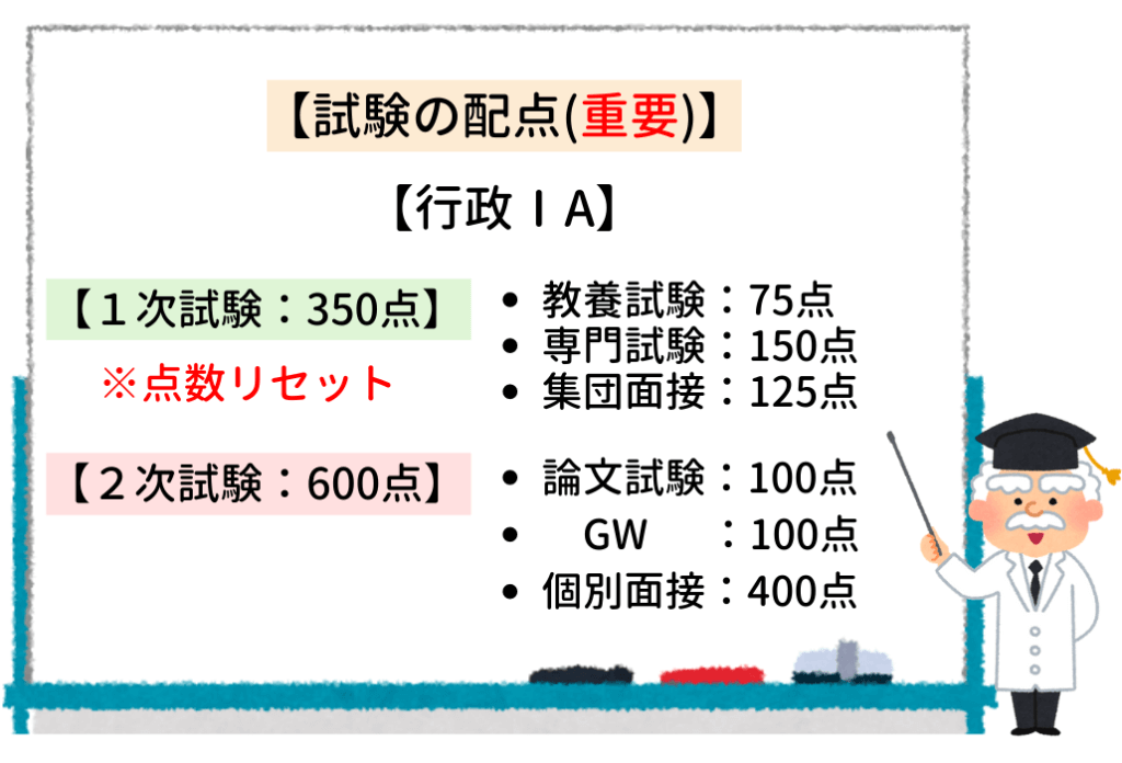 専門試験は対策もしやすいうえ、配点が教養の2倍あるから、ココで高得点を取っておけば1次を有利に進められそうだね!