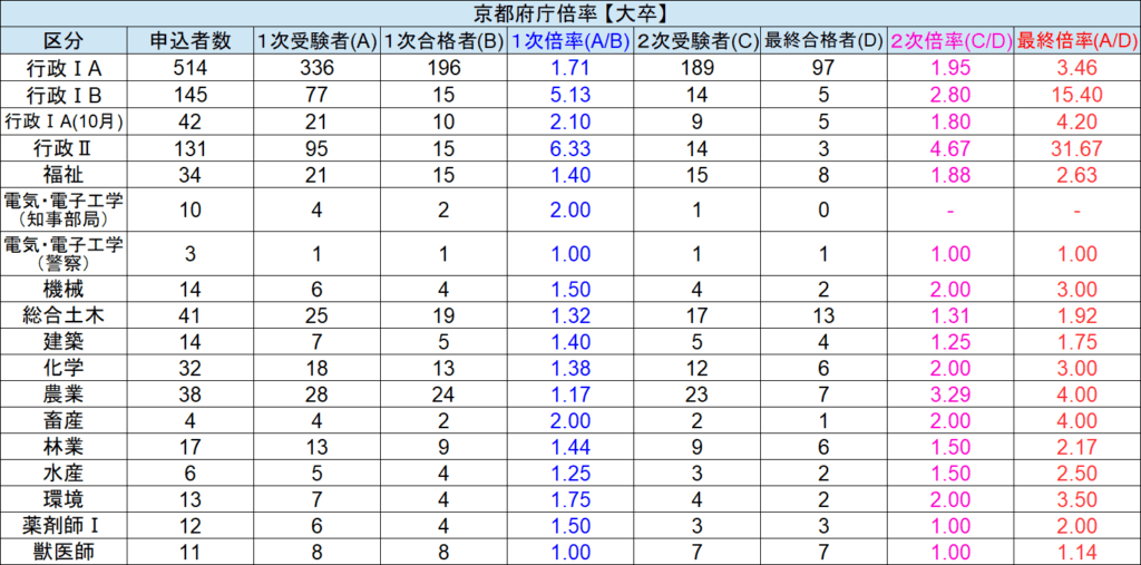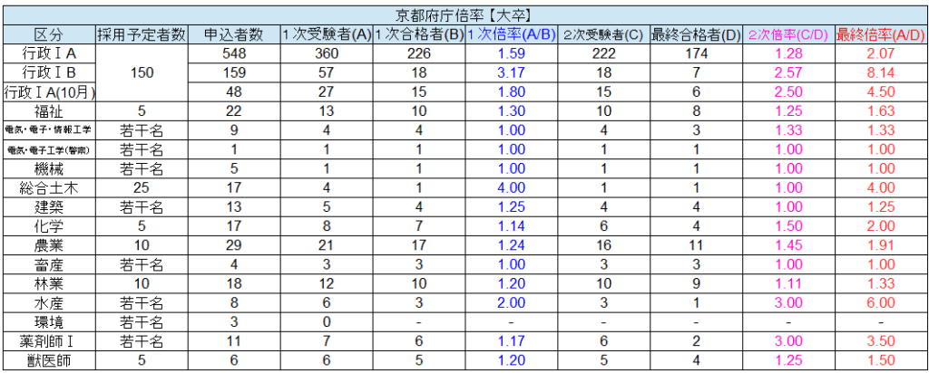 【京都府庁】令和1年度倍率一覧