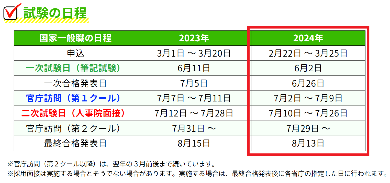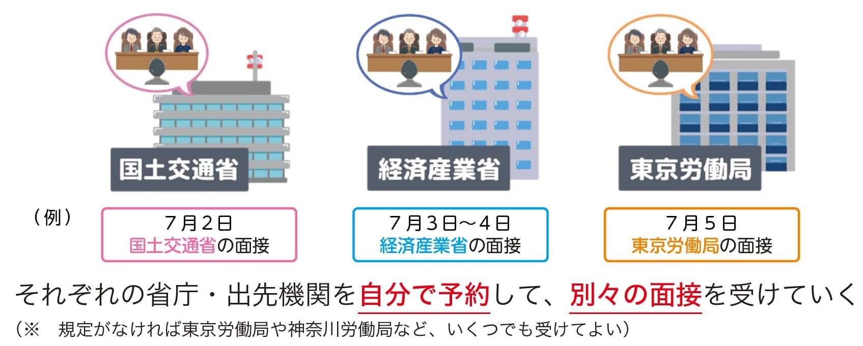 ※ただし、官庁訪問と呼ばれる各省庁との面接試験については、大学3年生の場合は翌年の官庁訪問から参加できることになります。(大学4年生で教養区分を受けた場合は、その年の夏に行われる官庁訪問に参加することができます)